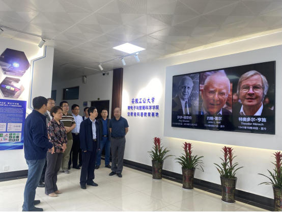 启动仪式结束后,水恒福一行参观了微电子与数据科学学院省科普教育基地,听取了学院在学生科技创新和科普基地建设的工作汇报。水恒福对微数学院近年来在科普教育、人才培养等方面取得的成绩给予充分肯定。他指出,学院要顺应科教兴国战略,立足办学定位,为学校国内知名特色高水平大学建设贡献力量。
