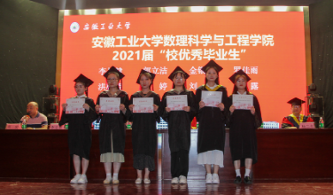 毕业典礼在庄严的国歌声中拉开帷幕。数理科学与工程学院院长黄仙山宣读了学院2021年安徽省普通高校品学兼优毕业生名单、校优秀毕业生名单和2021届毕业生校友联络员名单。校、院领导分别为优秀毕业生颁发荣誉证书,为校友联络员颁发聘书。
