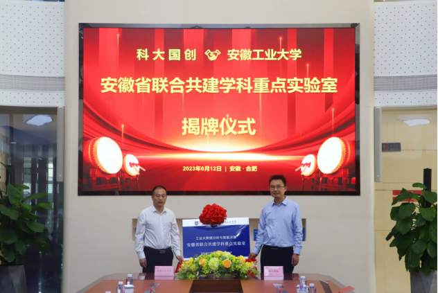 曾杰一行首先来到科大国创软件股份有限公司举行了校地合作座谈会暨就业基地授牌仪式,举行校企联合共建的安徽省学科重点实验室揭牌仪式。曾杰介绍了安徽工业大学办学历史沿革、学科优势以及近几年在学科专业建设、产学研合作、科技成果转化、人才培养等方面所取得的成绩。他表示,此次双方联合共建首批安徽省学科重点实验室,是深入学习贯彻习近平新时代中国特色社会主义思想和党的二十大精神,强化企业科技创新主体地位,加强与企业主导的产学研深度融合,践行产教融合、科教融汇发展战略的重要举措。他希望,双方继续加强在教学、研究、实践、就业等环节的全方位合作,着力探索校企合作新途径,聚力打造校企合作新示范。科大国创党委副书记、总经理李飞介绍了公司近年发展成果、未来规划以及核心技术等,并表示共建联合实验室是工业大数据研发和成果转化的重要平台,公司将结合自身产业化资源优势支持实验室建设,有效推动科技成果供给及对接转化;同时希望双方继续深化合作,充分发挥科研、人才、政策研究等优势。联合实验室主任赵龙从建设背景、建设目标、研究方向、建设保障、措施与进度等五个方面介绍了联合实验室的建设规划任。