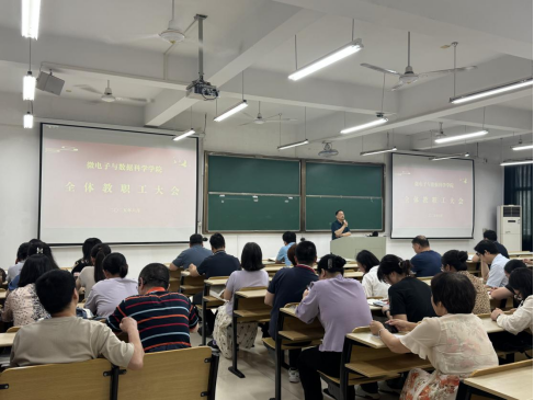 6月9日下午,微电子与数据科学学院在数理楼403召开全院教职工大会。会议由学院党委书记汪春胜主持,全体教职工参加了会议。