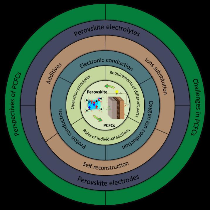 质子陶瓷燃料电池(PCFCs)是一种基于质子传导的新型能源转化技术。其中,钙钛矿(ABO3)及其衍生材料在PCFCs电解质和电极研究中被广泛应用。如何进行此类材料的合理设计、提高其综合性能已成为PCFCs研究的关键点。该工作深入分析了PCFCs的运行模式;阐述了钙钛矿结构材料作为PCFCs电解质和电极的工作机制;回顾了钙钛矿材料的关键调控手段;系统总结了PCFCs电解质、阴极、阳极的最新研究进展。该工作进一步加深了对钙钛矿材料的认识,有助于推动本领域研究持续向前发展。