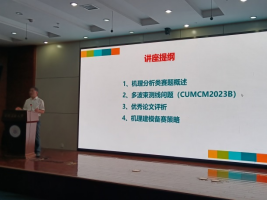 王义康教授对2023年CUMCM-B多波束测线问题的基本思路进行了解读,结合我校参赛论文作品,解析此类赛题的解题关键,并为备赛提出相关建议。会后王教授和老师、学生们进行了交流讨论,为进一步提升我校数学建模竞赛成绩打下了坚实的备赛基础。
