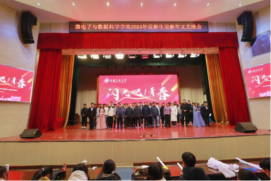 12月18日晚,微电子与数据科学学院在秀山校区新大学生活动中心隆重举办2024年“迎新生·迎新年”文艺晚会。学生工作部(处)部(处)长、就业创业指导中心主任赵龙,创新教育学院直属党支部书记、院长黄仙山,微数学院领导班子、系室主任、班主任代表、辅导员以及2023级全体新生参加。
