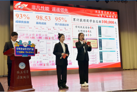 2023年11月27日,在安徽工业大学第十届“十佳班级”评比答辩会中,微电子与数据科学学院数据科学与大数据技术201班以全校第一名的成绩获评“十佳班级”称号,也是学院连续三年获评“十佳班级”荣誉。