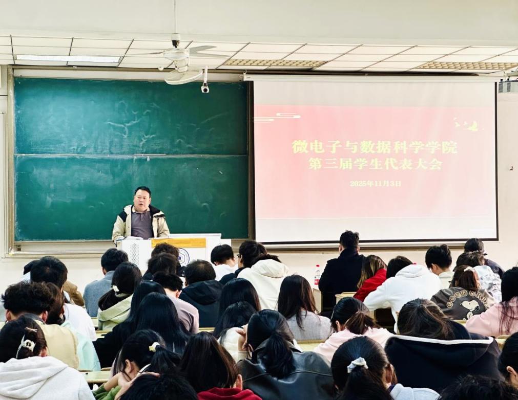 11月3日,微电子与数据科学学院第三届学生代表大会暨第三届研究生全体大会在东教一南102教室隆重召开。学院党委副书记、副院长、纪委书记张敏、团委书记段世祥、辅导员王小花、各年级本科生学生代表及全体研究生参加本次会议。