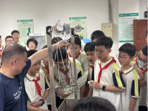 6月15日,马鞍山市第八初级中学七(17)中队前来微电子与数据科学学院安徽省科普教育基地开展“进物理殿堂 启智慧之门”社会实践活动。