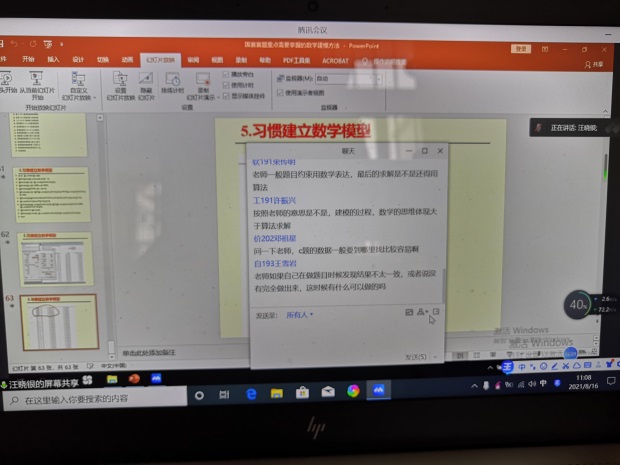 2021年8月16日上午,天津工业大学汪晓银教授应邀通过腾讯会议,作了题为“国赛赛题重点需要掌握的数学建模方法”的报告。数理科学与工程学院建模中心老师及即将参加数学建模国家竞赛的学生参加了报告会。