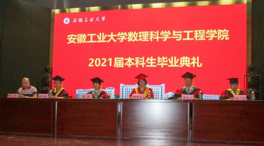 毕业典礼在庄严的国歌声中拉开帷幕。数理科学与工程学院院长黄仙山宣读了学院2021年安徽省普通高校品学兼优毕业生名单、校优秀毕业生名单和2021届毕业生校友联络员名单。校、院领导分别为优秀毕业生颁发荣誉证书,为校友联络员颁发聘书。