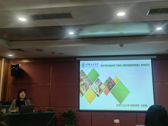 2023年10月27日-29日,由安徽省数学会主办,黄山学院承办的2023年安徽省数学会学术年会暨会员代表大会在黄山顺利召开。微电子与数据科学学院杨二光教授等一行5位老师参加了此次学术年会。27日上午,省数学会理事长叶向东院士作了省数学会年度工作报告并向获得2023年度安徽省青年数学奖的三位老师颁奖。27日下午,在分组报告中,我院谷勤勤老师作了题为“基于雨课堂教学工具的《特征值与特征向量》教学设计”教学类专题报告,介绍了我院自2021年设立基础拔尖人才培养基地以来,数学与应用数学专业基础课程《高等代数》的改革举措以及取得的教学成果,报告内容引起了参会老师们的热烈讨论和一致好评。