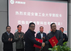 上午,在滁州市经信局和琅琊区相关部门领导的陪同下,学院一行来到安徽光智科技有限公司参观企业的工艺产线和检测实验室,听取企业产品研发和相关的技术积累。在随后的座谈会上,光智科技总经理刘留介绍了公司的发展历程、行业优势、产品规划及人才需求等情况。郭宏介绍了学校及学院的发展概况,希望双方能结合各自所长,在红外光学材料、镜头设计、激光晶体材料及钙钛矿太阳能薄膜电池技术等领域深入合作,推动技术研发及成果落地,同时在学生培养、实习实践和就业方面密切合作,实现高质量产教融合。双方还举行了“半导体产业协同育人基地”签约及授牌仪式,并商定尽快制定实施方案,共同推进具体工作落实到位。