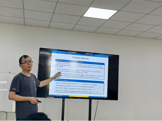 5月15日上午,应微电子与数据科学学院邀请,深圳市大数据研究院博士生导师李建泽副研究员在数理楼306室作了题为《关于紧流形上转换梯度投影算法的收敛性分析》的学术报告,报告会由学院院长杨二光主持,微电子与数据科学学院部分教师和研究生参加了学术报告会。