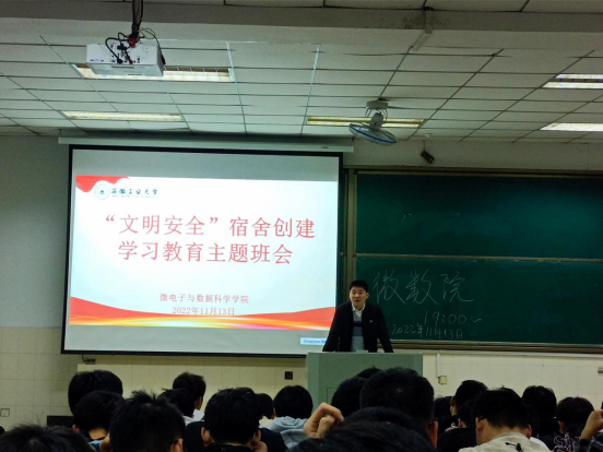 为进一步落实校文明安全宿舍创建工作,提升大学生文明安全意识,11月13日晚,微电子与数据科学学院在阶梯教室202召开“文明安全”宿舍创建学习教育主题班会,会议由21级辅导员许丹丹、张佳良主持,21级全体同学参加。
