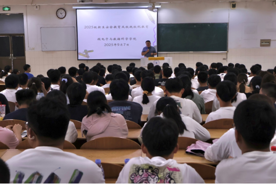 为培养大学生国家安全意识,高质量完成新生军训工作,9月7日,微数学院在秀山校区阶教101召开新生安全教育暨2025级新生军训动员大会。学院党委副书记、纪委书记、副院长张敏,2025级辅导员张佳良、周文潇及全体参训学生参会。会议由辅导员张佳良主持。