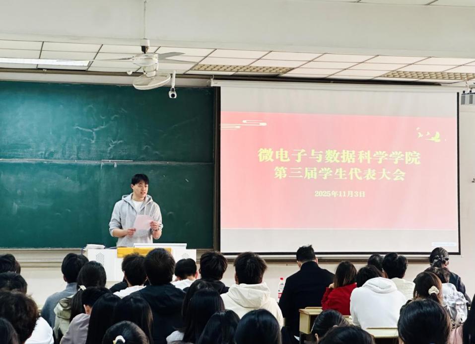 11月3日,微电子与数据科学学院第三届学生代表大会暨第三届研究生全体大会在东教一南102教室隆重召开。学院党委副书记、副院长、纪委书记张敏、团委书记段世祥、辅导员王小花、各年级本科生学生代表及全体研究生参加本次会议。