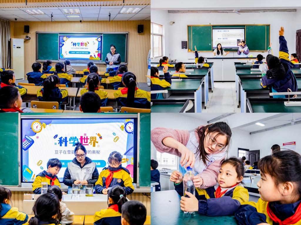 11月17日,安徽工业大学微电子与数据科学学院“数理行知”科普志愿队联合马鞍山市少年宫,走进当涂县大陇中心学校,开展以“浮沉子的魔法实验室”和“会跳舞的豆子”为主题的沉浸式科普活动。活动融合趣味实验演示、动手实践与互动讲解,引导同学们在亲身参与中探索科学奥秘,直观感受科学世界的无限魅力。